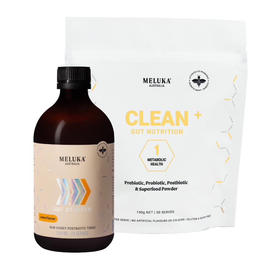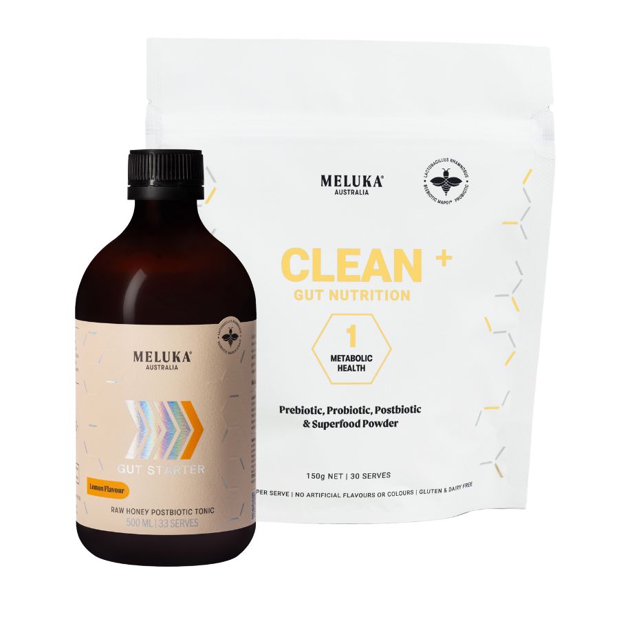 Better together to help support gut microbiome balance and metabolic health. Boost your gut health routine with a daily scoop of Clean+ Gut Nutrition powder and a 15ml serving of Gut Starter, Lemon Flavour.