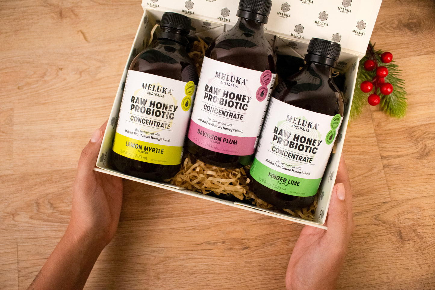 무엇을 얻을까? 선물 상자를 축하하거나 선물 상자를 마음껏 즐기세요오리지널 생꿀과 레몬 머틀 프로바이오틱스를 모두 포함하는 Celebrate Gift Box는 생꿀의 가장 큰 이점과 프로바이오틱스를 혼합하여 장 건강과 면역 체계를 지원합니다.