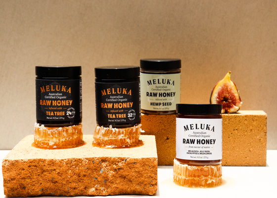 멜루카 오스트레일리아의 꿀 제품군은 방가왈빈 지역 전역에서 자라는 차나무와 계절 야생화에서 채취한 건강한 꿀벌이 생산한 토종 야생화 꿀로 시작됩니다. 우리가 일상적으로 사용하는 꿀 제품을 기반으로 다양한 티트리 꿀과 대마씨 꿀을 주입했으며, 앞으로는 호주 토종 식물 기반의 전체 식품 주입 제품을 추가로 제공할 예정입니다!